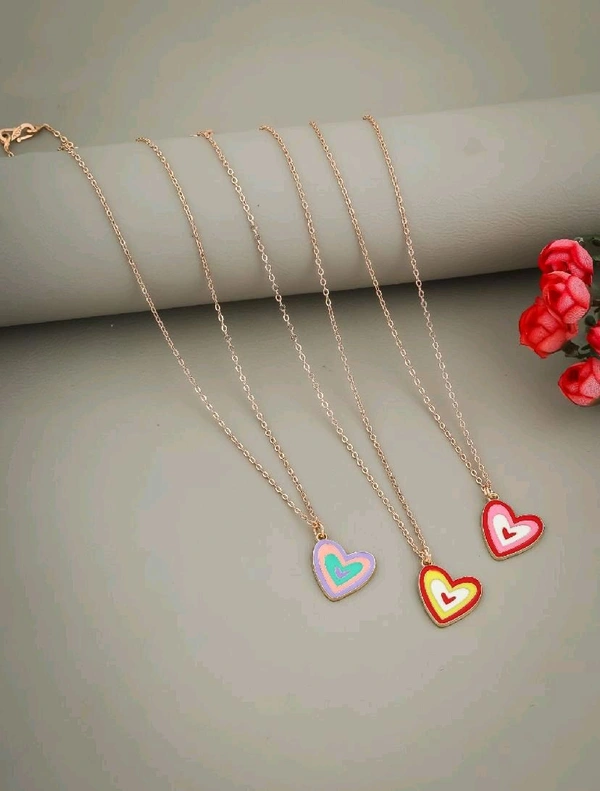 Add a playful touch to your wardrobe with this set of 3 colorful heart pendant necklaces. Featuring vibrant multicolor enamel heart charms on sleek gold-tone chains, these necklaces are perfect for women and girls who love vibrant, cheerful accessories.