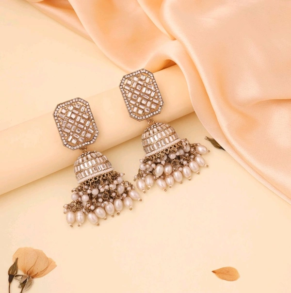 Gold Plated Princess Diamond Studded Pearl Jhumka