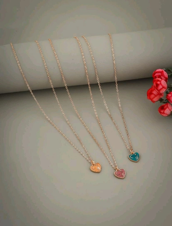 Key Features: •Set of 3 gold-tone necklaces with enamel heart pendants •Vibrant colors for a playful yet chic look •Lightweight, durable, and comfortable for daily wear •Perfect for casual outfits, parties, or as thoughtful giftsAdd a dash of elegance and color to your jewelry